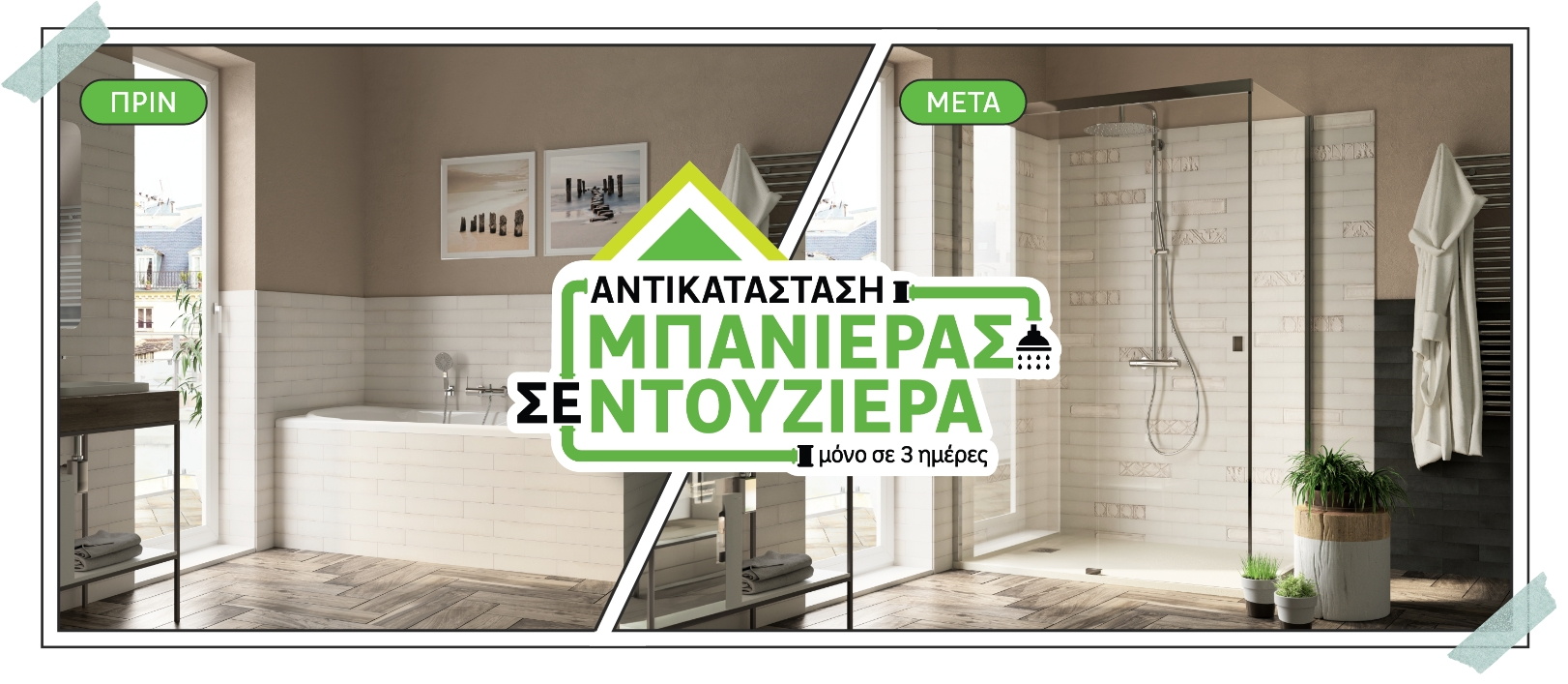 *Οι εργασίες αφορούν χώρο μπάνιου εώς και 10τμ. και δεν περιλαμβάνει αλλαγή/μεταφορά σωληνώσεων.
