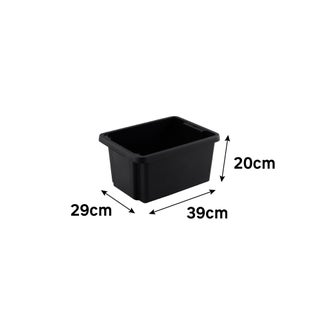 Κουτί σε μαύρο χρώμα και με διαστάσεις Υ20xΠ39xΒ29cm. Το συγκεκριμένο κουτί είναι κατασκευασμένο από 70% ανακυκλωμένο πλαστικό για μείωση των απορριμμάτων και για μια δεύτερη ευκαιρία ζωής στο πλαστικό. Επίσης, είναι πολύ πρακτικό καθώς όταν δεν χρησιμοποιείται μπορεί να τοποθετηθεί το ένα μέσα στο άλλο εξοικονομώντας σου χώρο και παράλληλα κατά την χρήση του μπορεί να στοιβαχθεί το ένα πάνω στο άλλο απλοποιώντας τον τρόπο αποθήκευσής του. Επιπλέον, δεν διαθέτει καπάκι έτσι ώστε να έχεις εύκολη πρόσβαση και άνετη αφαίρεση στα αντικείμενα που θα αποθηκεύσεις μέσα σε αυτό.