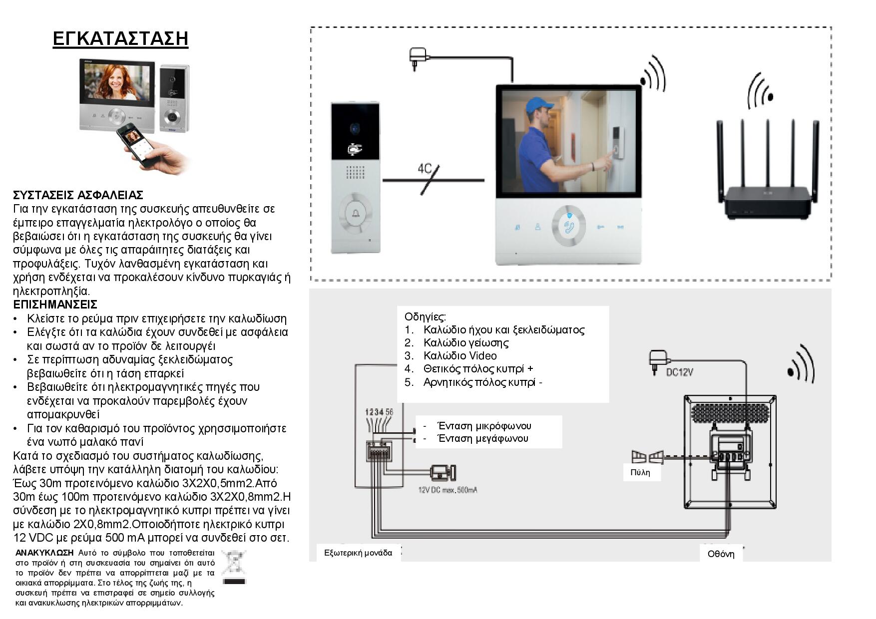 Το KIT αποτελείται από 1 θυροτηλεόραση 7" και μπουτονιέρα 2 καλωδίων και 7 RFID tags. Η νέα αντιβανδαλιστική μπουτονιέρα έχει ενσωματωμένη κάμερα υψηλής ευκρίνειας για άριστη οπτική επαφή με την είσοδο, μπορεί να ενεργοποιήσει 2 κλειδαριές και είναι ιδανική για εξωτερική χρήση. Η θυροτηλεόραση μπορεί να χρησιμοποιηθεί για την οπτική και ηχητική επικοινωνία του χρήστη με την είσοδο.