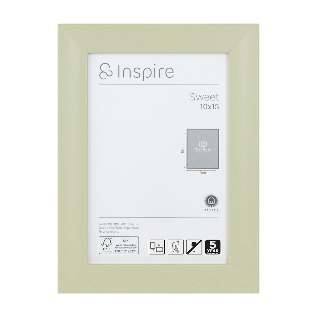 Κορνίζα Inspire της σειράς Sweet με πλάτος 15cm και ύψος 10cm, σε χρώμα πράσινο και υλικό κατασκευής πλαστικό. Μπορεί να τοποθετηθεί οριζόντια ή κάθετα στον τοίχο σου ή στα έπιπλα σου. Διατίθεται σε διάφορα μεγέθη και χρώματα.