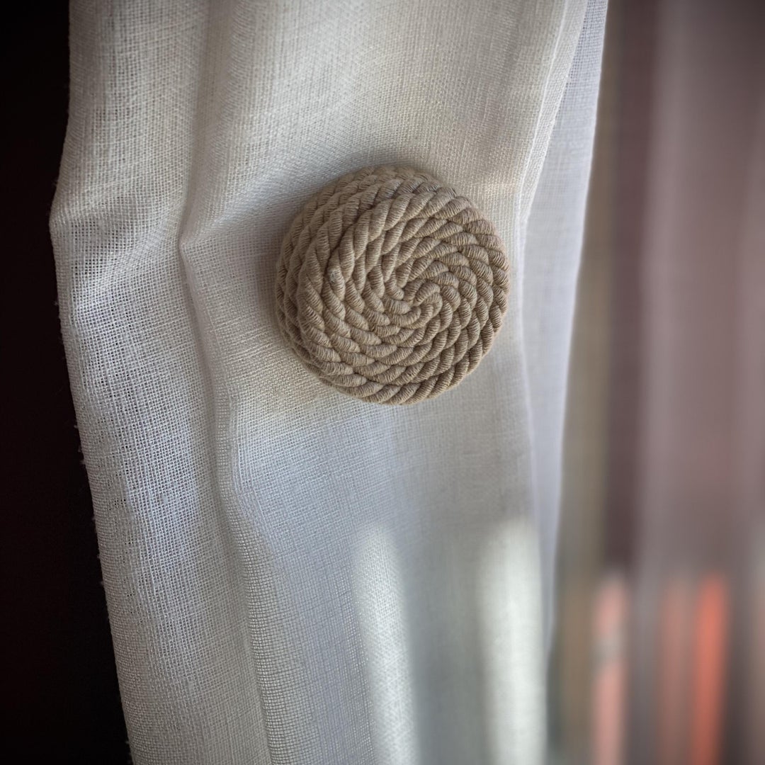 Δέστρα κουρτίνας Twist από σχοινί ιδανική για την συγκράτηση του πλαϊνού τμήματος της κουρτίνας ενώ παράλληλα λειτουργεί σαν ιδιαίτερο διακοσμητικό προσφέροντας καλύτερο αισθητικό αποτέλσμα στο χώρο. H συσκευασία περιλαμβάνει 1 τεμάχιο.