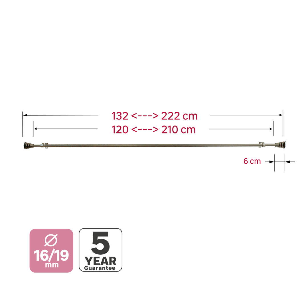 Σετ κουρτινόξυλο με σταθερό μήκος 120cm από μέταλλο σε ασημί χρώμα. Η επέκτασή του φτάνει μέχρι τα 210cm. Τα κουρτινόξυλα μπορούν να αλλάξουν την αισθητική του χώρου και να αναδείξουν τις κουρτίνες με μοναδικό τρόπο. Επίλεξε κουρτινόξυλα ανάμεσα από μια μεγάλη ποικιλία και διαφορετικά στυλ και μεταμόρφωσε το σπίτι σου εύκολα και οικονομικά.