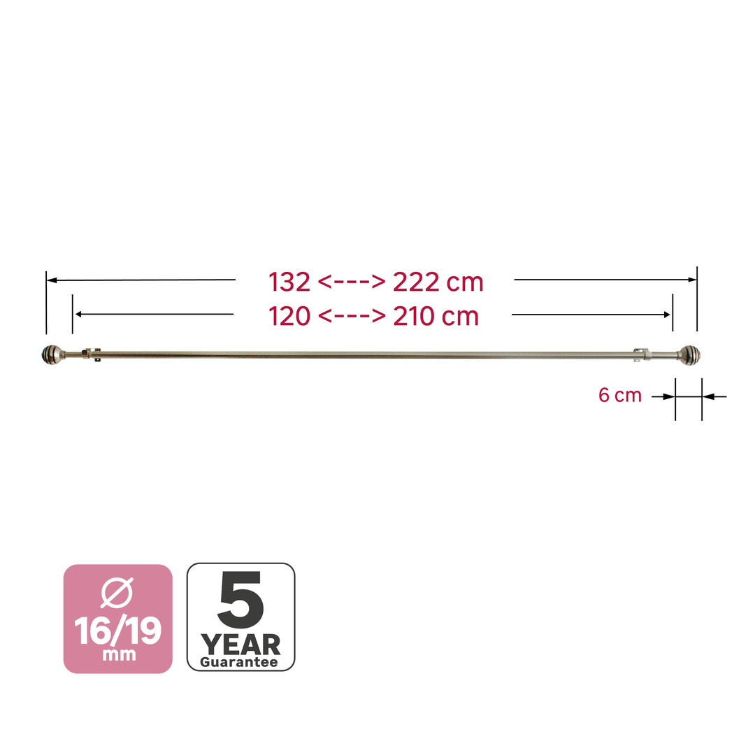 Σετ κουρτινόξυλο με σταθερό μήκος 120cm από μέταλλο σε ασημί χρώμα. Η επέκτασή του φτάνει μέχρι τα 210cm. Τα κουρτινόξυλα μπορούν να αλλάξουν την αισθητική του χώρου και να αναδείξουν τις κουρτίνες με μοναδικό τρόπο. Επίλεξε κουρτινόξυλα ανάμεσα από μια μεγάλη ποικιλία και διαφορετικά στυλ και μεταμόρφωσε το σπίτι σου εύκολα και οικονομικά.