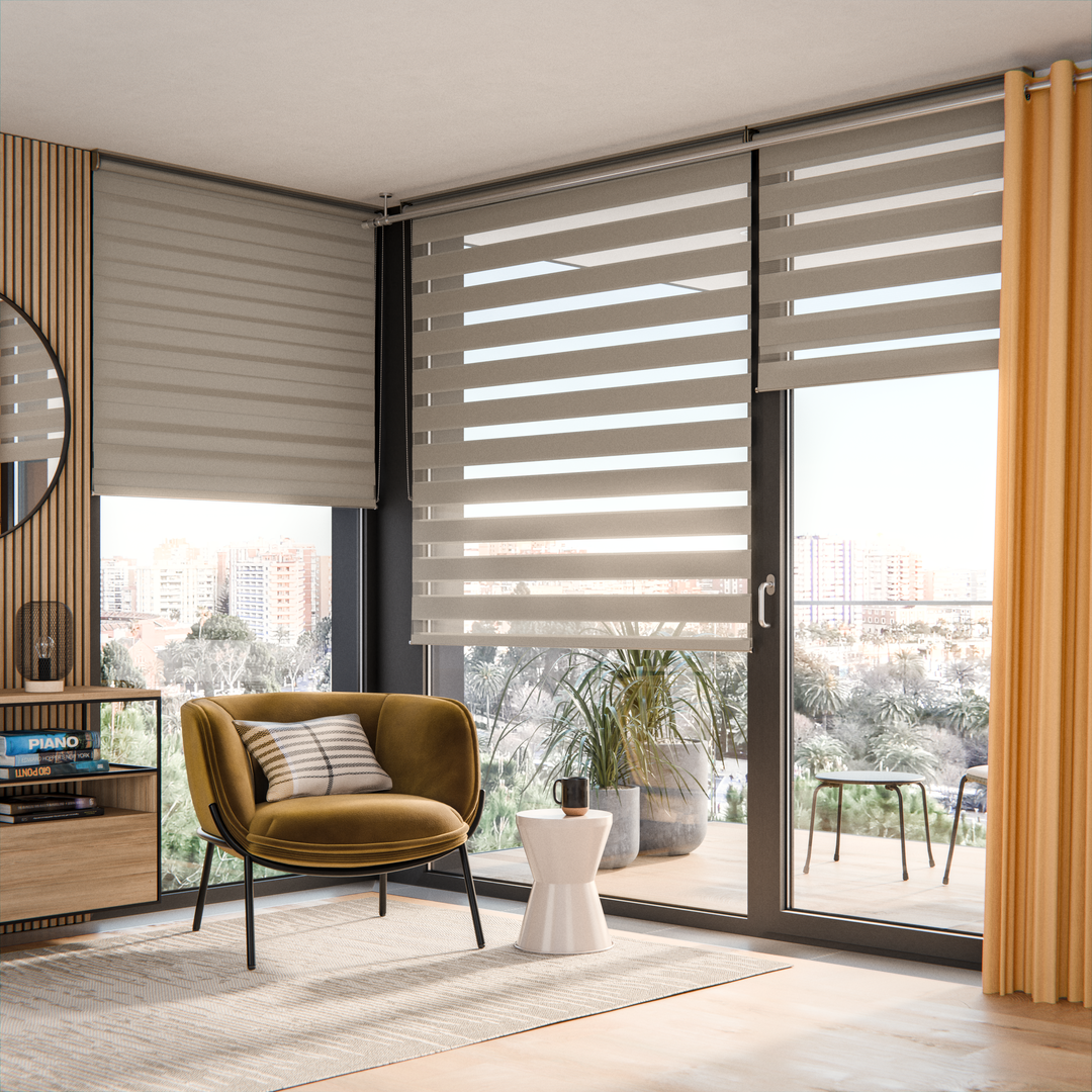 Ρολοκουρτίνα day & night εσωτερικού χώρου INSPIRE Bolero με ρίγες. Έχει χειροκίνητο μηχανισμό και καθαρίζεται εύκολα με βρεγμένο πανί. Οι ρολοκουρτίνες έχουν πολλές δυνατότητες: Μπορούν να περιορίσουν, να ρυθμίσουν και να μπλοκάρουν το φως που εισέρχεται στο χώρο, να απομονώσουν τη θερμότητα και να προστατέψουν την ιδιωτικότητα. Επίλεξε μέσα απο μια μεγάλη ποικιλία σε σχέδια και χρώματα την κατάλληλη ώστε να βρείς αυτη που ταιριάζει στο στυλ του χώρου σου και καλύπτει τις δικές σου ανάγκες.