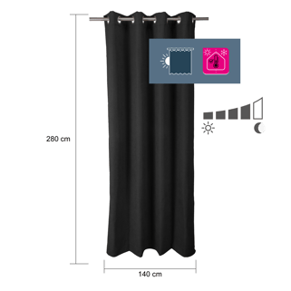 Μεταμορφώστε τον χώρο σας με τη θερμική κουρτίνα RAGNAR από την INSPIRE, έναν τέλειο συνδυασμό λειτουργικότητας και αισθητικής. Αυτή η θερμική κουρτίνα συσκότισης εγγυάται απόλυτο σκοτάδι για γαλήνιες νύχτες, ενώ διατηρεί τη βέλτιστη θερμοκρασία στην κρεβατοκάμαρά σας ή σε οποιοδήποτε άλλο δωμάτιο του σπιτιού σας. Αυτή η κουρτίνα 2 σε 1 προσφέρει απόλυτο σκοτάδι, διατηρώντας παράλληλα τη θερμότητα χάρη στο υπόστρωμά της από φλις. Το βελούδινο εφέ και το μαύρο χρώμα της είναι ιδανικά για μια λαμπερή διακόσμηση. Μία κουρτίνα με δύο τρόπους κρέμασης, με κρίκους ή χωρίς. Είναι κατασκευασμένο από 97% πολυεστέρα και 3% νάιλον σε γκρι Paris με ματ εμφάνιση. Εύκολη συντήρηση: Πλένεται στο πλυντήριο στους 30°. Αυτό το προϊόν είναι πιστοποιημένο STANDARD 100 από την ετικέτα Oeko-Tex®, που εγγυάται την απουσία επιβλαβών ουσιών σε ποσότητες που μπορεί να βλάψουν την υγεία. Προσφέρει 5 χρόνια εγγύηση. Διαστάσεις: 140 x 280 cm (πλάτος x ύψος)