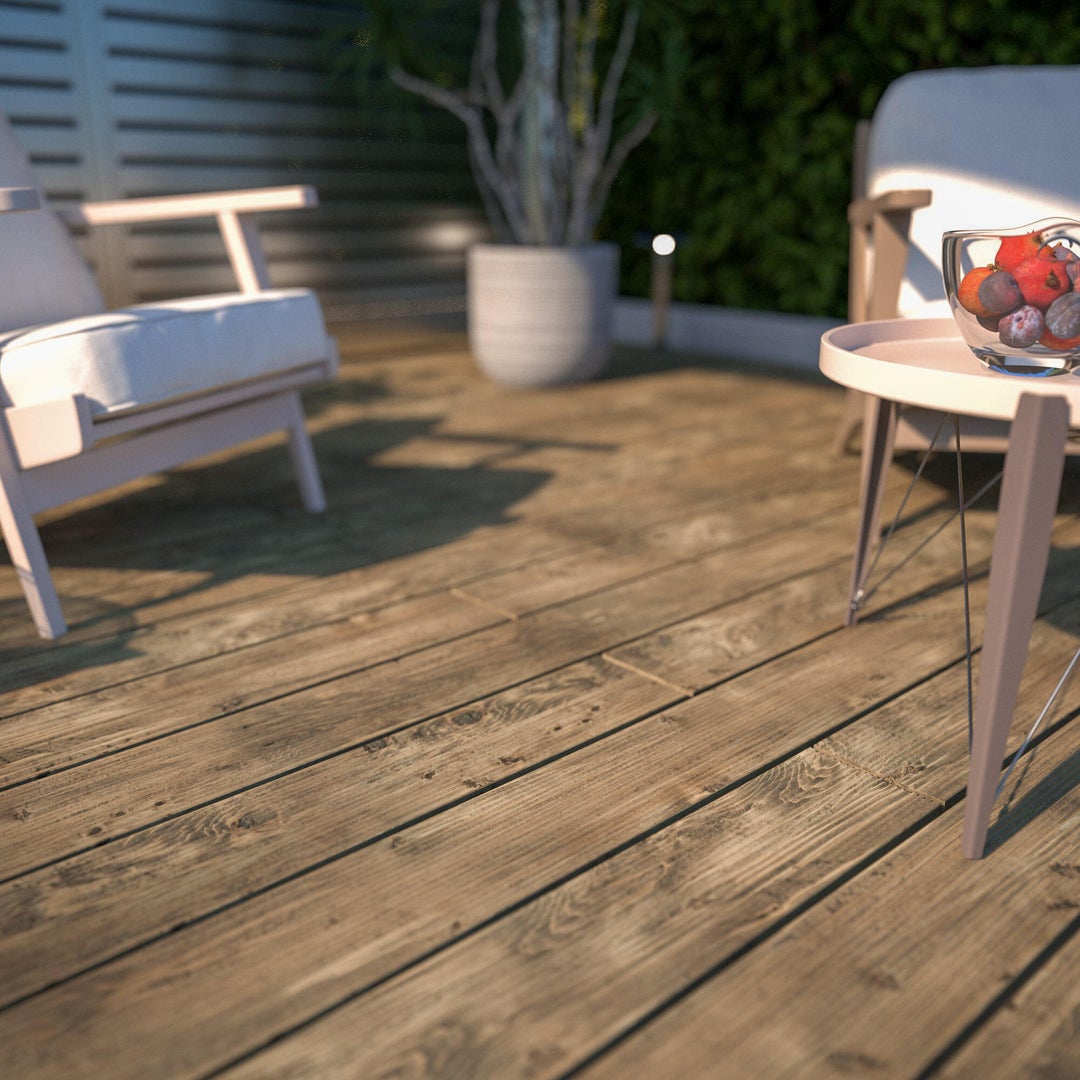 Σανίδα πεύκου, επεξεργασμένη σε αυτόκλειστο κλίβανο για αυξημένη ανθεκτικότητα. Πιστοποίηση PEFC, που εγγυάται ότι το ξύλο προέρχεται από δάση με βιώσιμη διαχείριση. Κατασκευάζεται στην Ευρωπαϊκή Ένωση με 5ετή εγγύηση. Διαστάσεις: 12 x 2,1 x 240 cm (πλάτος x πάχος x μήκος).