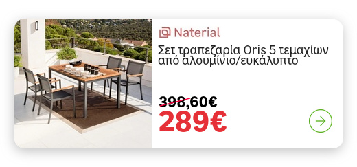 eshop μας, θα βρεις έπιπλα εξωτερικού χώρου σε τεράστια ποικιλία υλικών και στυλ όπως για παράδειγμα έπιπλα εξωτερικού χώρου ξύλινα, μεταλλικά ή και ανοξείδωτα, έπιπλα εξωτερικού χώρου με πρωτότυπα design, vintage, bamboo και μοντέρνα έπιπλα εξωτερικού χώρου, ακόμη και επαγγελματικά έπιπλα εξωτερικού χώρου, ώστε να βρεις ό,τι κι αν ψάχνεις και να μπορέσεις να καλύψεις κάθε σου ανάγκη!