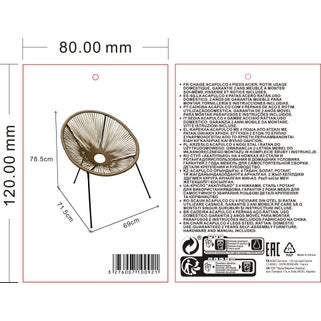 Πολυθρόνα εξωτερικού χώρου για κήπο ή βεράντα μοντέλο Acapulco της Naterial από ατσάλι και πλεγμένο συνθετικό rattan σε μαύρο χρώμα. Ιδανική για να περάσετε πολλές μέρες σε εξωτερικούς χώρους και να διακοσμήσετε τον εξωτερικό σας χώρο με γούστο. Για τη συντήρησή του, συνιστάται να το τοποθετείτε κάτω από κάλυμμα, προστατευμένο από το άμεσο ηλιακό φως, και να το αποθηκεύετε σε ξηρό και αεριζόμενο μέρος όταν δεν χρησιμοποιείται (ή να το καλύπτετε με κάλυμμα επίπλου). Στοιβαζόμενη για εύκολη αποθήκευση. Διαστάσεις: 69 x 78,5 x 71,5 cm (πλάτος x ύψος x βάθος)