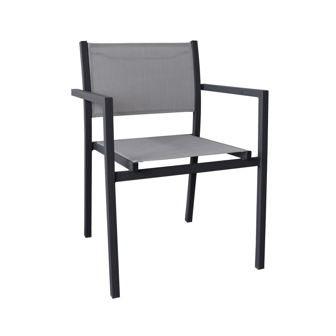 Πολυθρόνα μεταλλική, με τεξτιλίνη σε χρώμα γκρι. Για στιγμές χαλάρωσης στον κήπο ή την βεράντα σας