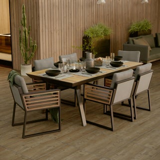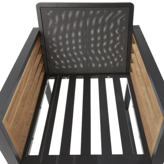 Χαρούμενη ατμόσφαιρα, φίλοι που περνάνε καλά μαζί, συζητήσεις που διαρκούν μέχρι το τέλος της βραδιάς... Αυτά βρίσκουμε στις καρέκλες κήπου Naterial Ionis. Τα φαρδιά καθίσματα τους με επένδυση από μαξιλάρια είναι ιδιαίτερα άνετα για να απολαύσετε τα γεύματά σας με φίλους μέχρι το τέλος της νύχτας. Ο συνδυασμός μετάλλου, βαμμένου σε ματ γκρι ανθρακί, και ξύλου teak FSC δίνει ενα βιομηχανικό στυλ. Μαλακή πλάτη χάρη στην ελαστικότητα του υφάσματος, ψηλά υποβραχιόνια, επενδεδυμένα με ξύλινα πηχάκια και χοντρά μαξιλάρια. Οι πολυθρόνες Ionis παρέχουν ένα άνετο και περιεκτικό καλωσόρισμα. Οι λοξές γραμμές των ποδιών και το πάχος των υλικών παρέχουν μεγάλη σταθερότητα στο σύνολο. Αυτή η πολυθρόνα συνδυάζεται τέλεια με το τραπέζι και το χαμηλό σαλόνι από τη σειρά Ionis που χρησιμοποιούν τις ίδιες γραμμές και υλικά. Υποστηρίζει βάρος 160 kg. Διαστάσεις: 56 x 77,5 cm (πλάτος x ύψος).
