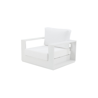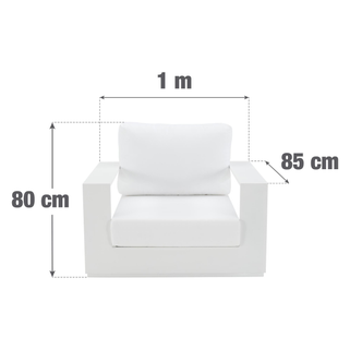 Η πολυθρόνα Lagun σας καλωσορίζει για μια στιγμή χαλάρωσης. Η επιβλητική της δομή είναι επίσης πολύ ανθεκτική, για ένα άνετο και ανθεκτικό σύνολο. Με το επιβλητικό της μέγεθος, η πολυθρόνα Lagun σας προσφέρει μια πολύ άνετη θέση καθίσματος. Το μεγάλο της σχήμα, καθώς και τα φαρδιά της μπράτσα, σας επιτρέπουν να επωφεληθείτε από έναν μεγάλο χώρο στον οποίο μπορείτε να χαλαρώσετε για να διαβάσετε ένα βιβλίο στον ήλιο ή να απολαύσετε ένα δροσερό απεριτίφ με φίλους. Το χαμηλό της κάθισμα της δίνει μια lounge εμφάνιση που σας προσκαλεί να χαλαρώσετε. Για να βελτιώσει περαιτέρω το επίπεδο άνεσης, η πολυθρόνα Lagun διαθέτει δύο μαξιλάρια σε λευκό χρώμα που είναι ευχάριστα στην αφή και είναι κατασκευασμένα από textilene, ένα ανθεκτικό και εύκολο στη φροντίδα υλικό που σας επιτρέπει να καθαρίζετε αμέσως τους τυχαίους λεκέδες. Σχεδιασμένη για να σας εγγυάται ένα ανθεκτικό σετ, η κατασκευή της πολυθρόνας Lagun είναι εξ ολοκλήρου κατασκευασμένη από αλουμίνιο. Αυτό το ισχυρό υλικό αντιστέκεται στηνυγρασία και τη σκουριά. Για ένα ολοκληρωμένο σετ συνδυάστε το με το τραπεζάκι και τον καναπέ της ίδιας σειράς.