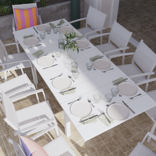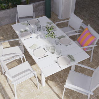 Η καρέκλα Lyra Beta προσφέρει εξαιρετική άνεση στο κάθισμα. Χάρη στα μπράτσα της, θα νιώσετε πλήρη υποστήριξη. Το κάθισμα και η πλάτη είναι κατασκευασμένα από σύνθεση textilene, ακολουθώντας τις γραμμές του σώματός σας για υψηλό επίπεδο άνεσης. Στιβαρή, η καρέκλα Lyra Beta έχει σχεδιαστεί για να αντέχει στο χρόνο. Ο σκλαετός της, εξ ολοκλήρου από αλουμίνιο, αντιστέκεται σε ζημιές που μπορεί να προκληθούν από την υγρασία, το κρύο και τη σκουριά. Το κάλυμμα Textilene του είναι επίσης πολύ ανθεκτικό. Σχεδιασμένες για καθημερινή χρήση, οι καρέκλες Lyra Beta είναι ελαφριές, στοιβάζονται και συντηρούνται εύκολα. Μεταξύ απλότητας και μοντερνισμού οι γραμμές της καρέκλας Lyra Beta είναι απλές και ευάερες. Το λευκό χρώμα δίνει χαρακτήρα στην τραπεζαρία σας. Μπορεί εύκολα να συνδυαστεί με τα τραπέζια της σειράς Lyra και Odyssea. Αυτή η καρέκλα διατίθεται επίσης σε ανθρακί. Κατασκευασμένη από αλουμίνιο και ύφασμα, αυτή η καρέκλα είναι ανθεκτική στους ατμοσφαιρικούς παράγοντες και στεγνώνει γρήγορα, απαιτώντας ελάχιστη συντήρηση. Για να το καθαρίσετε, απλώς χρησιμοποιήστε ένα υγρό πανί και ένα ουδέτερο προϊόν.