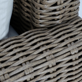 Υιοθετήστε το τροπικό στυλ των επίπλων κήπου Ayamo. Ιδανικό για 4 άτομα έχει μια αισθητικά όμορφη και πολύ ανθεκτική συνθετική πλέξη από rattan που δεν απαιτεί σχεδόν καμία συντήρηση. Συμπεριλαμβανομένου ενός χαμηλού τραπεζιού με γυάλινη επιφάνεια, το σετ επίπλων κήπου Ayamo επίσης αποτελείται από έναν καναπέ και δύο ατομικές πολυθρόνες με μεγάλες αναλογίες, τόσο στο κάθισμα όσο και στα υποβραχιόνια, που αυξάνουν το επίπεδο άνεσης, ώστε να απολαύσετε μια πραγματική στιγμή χαλάρωσης. Τέλειος συνδυασμός στυλ και πρακτικότητας, τα έπιπλα αντέχουν στις κλιματικές διακυμάνσεις όπως το κρύο και την υγρασία διαθέτοντας ανθεκτικότητα και αντοχή. Σχεδιασμένο να σας συνοδεύει σε καθημερινή βάση, ο σκελετός του σετ Ayamo είναι κατασκευασμένος από αλουμίνιο. Ελαφρύ και στιβαρό αντιστέκεται στην υγρασία και τη σκουριά. Με την μποέμ εμφάνισή τους, τα έπιπλα κήπου Ayamo συνδυάζονται εύκολα για μια κομψή και ζεστή διακόσμηση. Ο συνδυασμός των μαξιλαριών σε εκρού χρώμα και του rattan σε μπεζ ενισχύει τη φυσική του εμφάνιση. Τα αφαιρούμενα μαξιλάρια διευκολύνουν τον καθαρισμό και τη συντήρηση του σετ