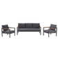 Σετ σαλόνι Naterial Oris II για 5 άτομα που αποτελείται από 1 καναπέ, 2 πολυθρόνες και 1 τραπεζάκι.Industrial στυλ, με σκελετό κατασκευασμένο από γκρι αλουμίνιο και ξύλο ευκάλυπτου. Διαθέτει επίσης 8 μαξιλάρια με αποσπώμενα καλύμματα από γκρι πολυεστέρα. Σχεδιασμένα για βέλτιστη άνεση, τα μαξιλάρια στην πλάτη και το κάθισμα των πολυθρόνων και του καναπέ εγγυώνται ότι θα είστε άνετοι για πολλές ώρες. Έχουν υποβληθεί σε αντι-UV και υδατοαπωθητική επεξεργασία, που επιβραδύνει τον αποχρωματισμό τους και σας επιτρέπει να σκουπίσετε αμέσως τους λεκέδες. Το κεντρικό τραπέζι του επιτρέπει σε όλους τους επισκέπτες να βάλουν το ποτό τους σε κοντινή απόσταση. Με πιστοποίηση UNI EN 581 για έπιπλα εξωτερικού χώρου. Αυτό σημαίνει ότι όλα τα εξαρτήματά του πληρούν τις γενικές απαιτήσεις ασφάλειας για οικιακή, δημόσια χρήση ή χρήση σε κάμπινγκ. Με επιπλέον πιστοποίηση FSC, η οποία πιστοποιεί ότι το ξύλο προέρχεται από δάση με βιώσιμη διαχείριση που σέβονται το περιβάλλον. Διαστάσεις κάθε πολυθρόνας: 66,8 x 65 x 78 cm (πλάτος x ύψος x μήκος).