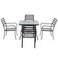 Ένα πλήρες σετ αποτελούμενο από ένα τραπέζι, 4 καρέκλες και μια ομπρέλα, το σετ Rono είναι ιδανικό για ένα δείπνο στον κήπο 4 ατόμων. Η ομπρέλα διαμέτρου 2,70 m μπλοκάρει το 90% των ακτίνων UV για να προστατεύει τους καλεσμένους σας από τον ήλιο. Μια γοητευτική γωνιά κήπου, οι καμπύλες των πολυθρόνων και το σφυρήλατο εφέ της γυάλινης κορυφής δίνουν σε αυτό το σύνολο ένα νεοκλασικό στυλ. Θα δημιουργήσει έναν απολαυστικό χώρο στον κήπο σας. Για να διατηρήσετε τα έπιπλά σας για μεγάλο χρονικό διάστημα, συνιστάται να τα αποθηκευούμε σε χώρο προστατευμένο από την υγρασία, σε υπόστεγο κήπου ή με αδιάβροχο κάλυμμα Naterial. Καθαρίζεται εύκολα με ένα υγρό πανί.
