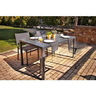 Σετ επίπλων κήπου ή βεράντας Orpheus που αποτελείται από ένα ορθογώνιο μεταλλικό τραπέζι Orpheus και 4 στοιβαζόμενες πολυθρόνες κήπου Orion Alpha από αλουμίνιο σε σκούρο γκρί χρώμα. Είναι ιδανικό για 4 άτομα, για γεύματα αλλά και για να απολαύσετε χαλαρές στιγμές σε εξωτερικούς χώρους. Το τραπέζι είναι κατασκευασμένο από ατσάλι σε χρώμα ανθρακί με γυάλινη επιφάνεια. Η λεία γυάλινη επιφάνειά του καθαρίζεται εύκολα και είναι ιδιαίτερα ανθεκτική. H κατασκευή του από χάλυβα (ατσάλι) είναι σταθερή και συμπαγής. Οι καρέκλες Naterial Orion Alpha II είναι κατασκευασμένες από αλουμίνιο, με κάθισμα και πλάτη από ύφασμα PVC textilene, που τις καθιστούν άνετες και ευέλικτες. Αυτό το ύφασμα PVC προσφέρει ελαστικότητα, αντοχή στις καιρικές συνθήκες και μπορεί να καθαριστεί εύκολα. Mέγιστο βάρος 160 κιλά. Για εύκολη αποθήκευση, οι καρέκλες στοιβάζονται. Διαστάσεις τραπεζιού: 90x72x150cm (πλάτος x ύψος x μήκος); καρέκλες: 57x85x55cm (ΠxΥxB)