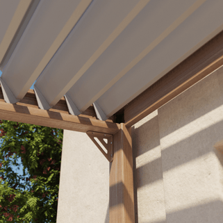 Ζήστε σε απόλυτη αρμονία με το περιβάλλον σας κάτω από την βιοκλιματική πέργκολα Clima Odyssea. Χάρη στις ρυθμιζόμενες περσίδες (από 0 έως 90°), θα έχετε τέλειο έλεγχο του φωτός και του φυσικού αερισμού. Το καλοκαίρι, ρυθμίστε τις περσίδες με τη μανιβέλα για να δημιουργήσετε σκιά: το ανοιχτό χρώμα τους έχει επιλεγεί για να αντανακλά το ηλιακό φως και να αποτρέπει τη συσσώρευση θερμότητας. Η κλίση τους δημιουργεί ένα απαλό, αναζωογονητικό αεράκι που επιτρέπει στο ζεστό αέρα να διαφύγει. Το χειμώνα, ανοίξτε τις περσίδες για να αφήσετε το φως να εισέλθει και να ζεστάνει το χώρο σας. Όταν είναι κλειστές, οι περσίδες κατευθύνουν το νερό της βροχής σε ένα σύστημα αποστράγγισης ενσωματωμένο στα πόδια της κατασκευής. Ανθεκτική και εύκολη στο χειρισμό. Σχεδιασμένη από αλουμίνιο (σκελετός και περσίδες) αυτή η πέργκολα εγγυάται ποιότητα και ανθεκτικότητα. Δεν σκουριάζει και είναι ανθεκτική στις καιρικές συνθήκες και τις ακτίνες UV, εξασφαλίζοντας την ανθεκτικότητά της σε όλες τις εποχές. Τα διπλά τοιχώματα των περσίδων της προσφέρουν αντοχή στις χειμερινές συνθήκες. Εύκολη εγκατάσταση & συντήρηση