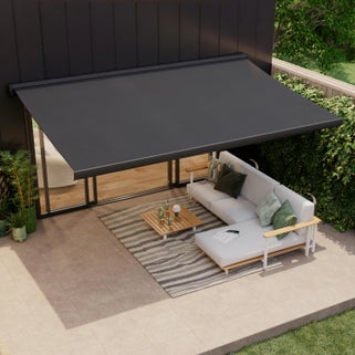 Απολαύστε τα καλοκαιρινά σας βράδια με την τέντα Loby με ενσωματωμένα LED. Χάρη στον διακριτικά ενσωματωμένο φωτισμό LED στους βραχίονες, αυτή η τέντα θα είναι ο σύμμαχός σας μέρα και νύχτα! Ο ελκυστικός σχεδιασμός της, με το ανάγλυφο φινίρισμα βαφής και τα πλαϊνά πάνελ, θα συμπληρώσει εύκολα την πρόσοψή σας. Προσφέρει άφθονη σκιά, ιδανική για μεγάλη βεράντα ή κήπο φιλοξενώντας άνετα έως και 6 άτομα. Για μέγιστη άνεση, η τέντα είναι εξοπλισμένη με κινητήρα & τηλεχειριστήριο, επιτρέποντάς σας να την ανοίγετε και να την κλείνετε με ένα μόνο κλικ (δεν περιλαμβάνονται μπαταρίες). Η σύνδεση ρεύματος βρίσκεται στην αριστερή πλευρά της τέντας και παρέχεται χειροκίνητος στρόφαλος σε περίπτωση διακοπής ρεύματος. Η τέντα Loby διαθέτει μια πλήρως κλειστή κασέτα αλουμινίου, ένα στιβαρό και ανθεκτικό στη διάβρωση υλικό που προστατεύει πλήρως το ύφασμα και το πλαίσιο όταν είναι μαζευμένα, προστατεύοντάς τα από τη σκόνη και τα στοιχεία της φύσης. Το ύφασμα από ακρυλικό των 270 g/m² είναι ανθεκτικό στην υπεριώδη ακτινοβολία. Αδιάβροχη, επιτρέπει στο νερό να κυλάει και να διαχέεται σε μέτρια βροχή.