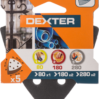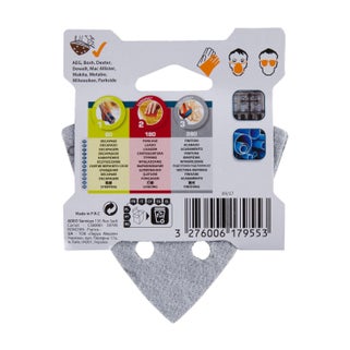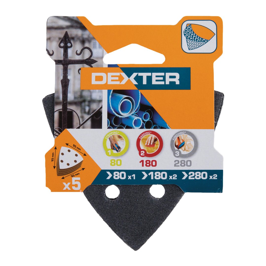 Σετ 5 γυαλόχαρτα Δέλτα (93x93mm) με χοντρή κόκκωση G80/1. Ιδανικά για γρήγορη και αποτελεσματική αφαίρεση υλικού, όπως σκουριά ή παλιά χρώματα, σε μεταλλικές επιφάνειες.