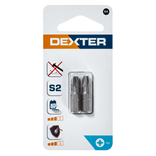 Μύτες κατσαβιδιών DEXTER τύπου Pozidriv. Το σετ αποτελείται από 2 μύτες PZ3. Καλύπτουν μια πιο μεγάλη γκάμα εφαρμογών διασφαλίζοντας μια αποτελεσματική, γρήγορη και σταθερή διάτρηση.
