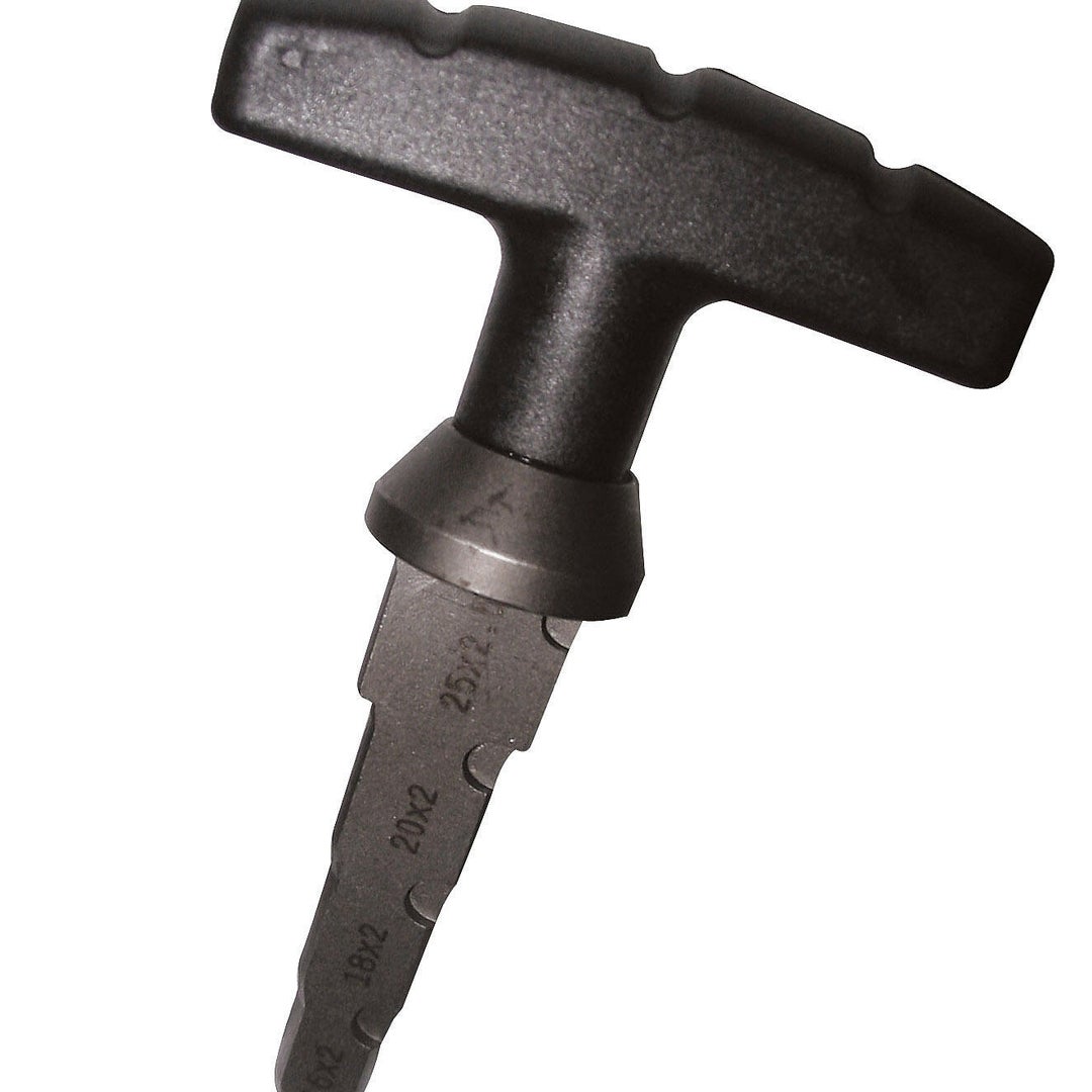 Ιδανική για καλιμπράρισμα και εσωτερική απογρέζωση. Διαθέτει 4 διαμέτρους ανά προϊόν για καλιμπράρισμα των πιο κινήσιμων διαστάσεων, δύο λειτουργίες για τις πολυστρωματικές σωλήνες, επανακαλιμπράρισμα της σωλήνας μετά την κοπή και εσωτερική απογρέζωση της σωλήνας για αποφυγή τραυματισμού της ασφάλειας του ρακόρ. Είναι κατασευασμένη απο ανθεκτικό υλικό, σώμα από μαυρισμένο χάλυβα, σκληρότητα 95HrB.