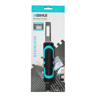 Οδοντωτή σπάτουλα κόλλας Bihui 280x120mm, δόντια 10mm. Εργαλείο ακριβείας για την ομοιόμορφη εφαρμογή κόλλας πλακιδίων.