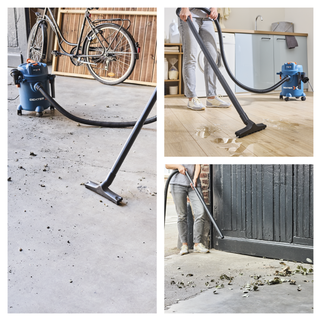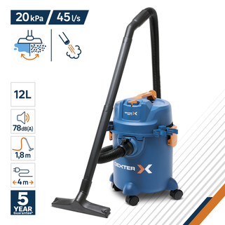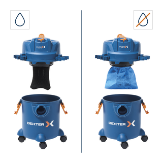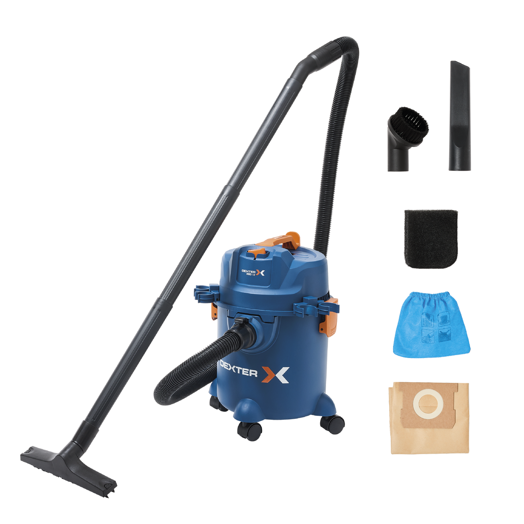 Η σκούπα υγρών και στερεών DEXTER DWD12 αποτελεί την ιδανική λύση για τον καθαρισμό νερού, σκόνης, πριονιδιών και άλλων μικροϋπολειμμάτων, προσφέροντας κορυφαία απόδοση 1200W. Διαθέτει λειτουργία φυσήματος για την απομάκρυνση ρύπων από δυσπρόσιτα σημεία, ενώ ο πλαστικός κάδος 12 λίτρων με κλιπ ασφαλείας εξασφαλίζει εύκολο και γρήγορο άδειασμα. Ο compact σχεδιασμός της, σε συνδυασμό με τις πολυκατευθυντικές ρόδες και το καλώδιο μήκους 4 μέτρων, προσφέρει μεγάλη ελευθερία κινήσεων και άνετη μεταφορά. Η σκούπα είναι κατασκευασμένη από 100% ανακυκλωμένο πλαστικό και συνοδεύεται από πλήρη γκάμα εξαρτημάτων, όπως πέλματα για σκληρά δάπεδα, ακροφύσια για γωνίες και ειδικά φίλτρα για στεγνό ή υγρό καθαρισμό, τα οποία αποθηκεύονται απευθείας πάνω στη συσκευή για μέγιστη εργονομία.