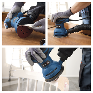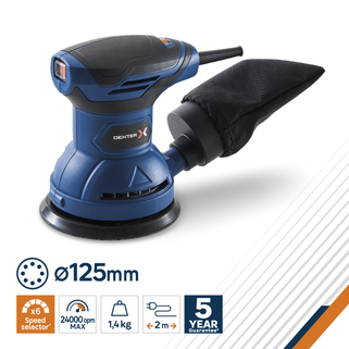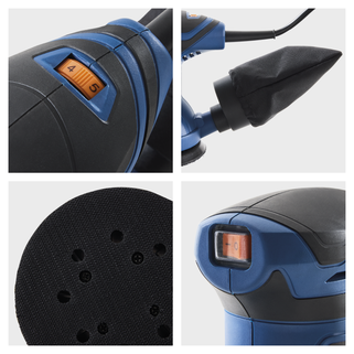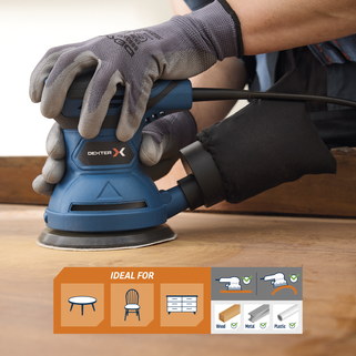 Το έκκεντρο τριβείο Dexter 320W αποτελεί ένα αξιόπιστο εργαλείο για εργασίες λείανσης και φινιρίσματος σε επιφάνειες από ξύλο, μέταλλο και πλαστικό. Είναι σχεδιασμένο για χρήση τόσο σε επίπεδες όσο και σε καμπύλες επιφάνειες, ενώ διαθέτει επιλογέα ταχύτητας που σας επιτρέπει να ρυθμίζετε την ισχύ ανάλογα με το υλικό και το επιθυμητό αποτέλεσμα. Η αντιολισθητική λαβή Soft Grip προσφέρει άνετο και ασφαλές κράτημα, διευκολύνοντας τον χειρισμό κατά τη διάρκεια της εργασίας. Το τριβείο είναι εξοπλισμένο με σύστημα αυτοπρόσφυσης (velcro) για την ταχύτατη αλλαγή των δίσκων λείανσης, ενώ για τη διατήρηση ενός καθαρού χώρου εργασίας, συνοδεύεται από σάκο συλλογής σκόνης και αντάπτορα σύνδεσης με σκούπα. Στη συσκευασία περιλαμβάνεται επίσης ένας δίσκος λείανσης για ξύλο (G80) για άμεση χρήση