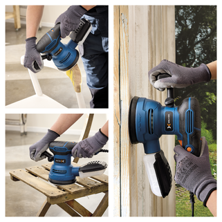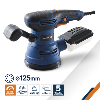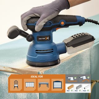 Το έκκεντρο τριβείο Dexter 420W αποτελεί την ιδανική επιλογή για εργασίες λείανσης και φινιρίσματος σε επιφάνειες από ξύλο, μέταλλο και πλαστικό. Σχεδιασμένο για χρήση σε επίπεδες αλλά και καμπύλες επιφάνειες, διαθέτει επιλογέα ταχύτητας που σας επιτρέπει να προσαρμόζετε την ένταση ανάλογα με το υλικό και τις απαιτήσεις της εργασίας σας. Η εργονομική λαβή Soft Grip με αντιολισθητική υφή εξασφαλίζει άνετο χειρισμό, ενώ η αναδιπλούμενη μπροστινή λαβή προσφέρει σταθερό κράτημα και εξοικονόμηση χώρου κατά την αποθήκευση. Το τριβείο διαθέτει σύστημα αυτοπρόσφυσης (velcro) για γρήγορη αλλαγή των δίσκων λείανσης και μπορεί να χρησιμοποιηθεί τόσο οριζόντια όσο και κάθετα. Για ένα καθαρό περιβάλλον εργασίας, η συσκευή συνοδεύεται από δοχείο συλλογής σκόνης και αντάπτορα σύνδεσης με σκούπα, ενώ στη συσκευασία περιλαμβάνονται τρία γυαλόχαρτα ξύλου (G40, G80 & G120) για άμεση έναρξη των εργασιών σας