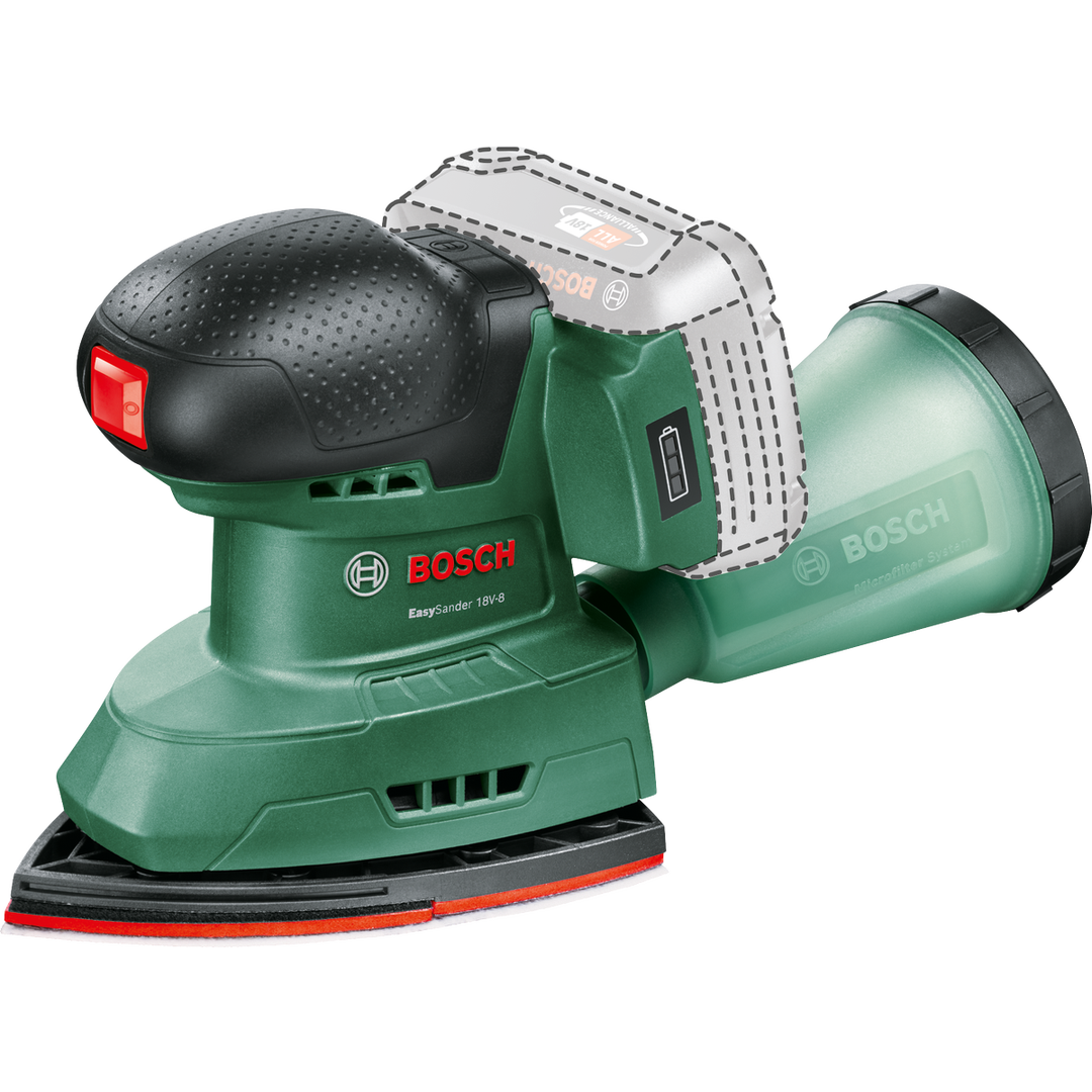 Το πολυτριβείο Bosch EasySander 18V-8 είναι το πολυεργαλείο της λείανσης, ειδικά σχεδιασμένο για να φτάνει εκεί που τα άλλα τριβεία σταματούν. Με την πλάκα λείανσης σε σχήμα σίδερου, μπορείτε να εργαστείτε με άνεση σε γωνίες, ακμές και δυσπρόσιτα σημεία μικροεπίπλων. Διαθέτει σύστημα αυτοπρόσφυσης για γρήγορη αλλαγή γυαλόχαρτου και είναι εξαιρετικά ελαφρύ, προσφέροντας πλήρη ελευθερία κινήσεων χωρίς καλώδια