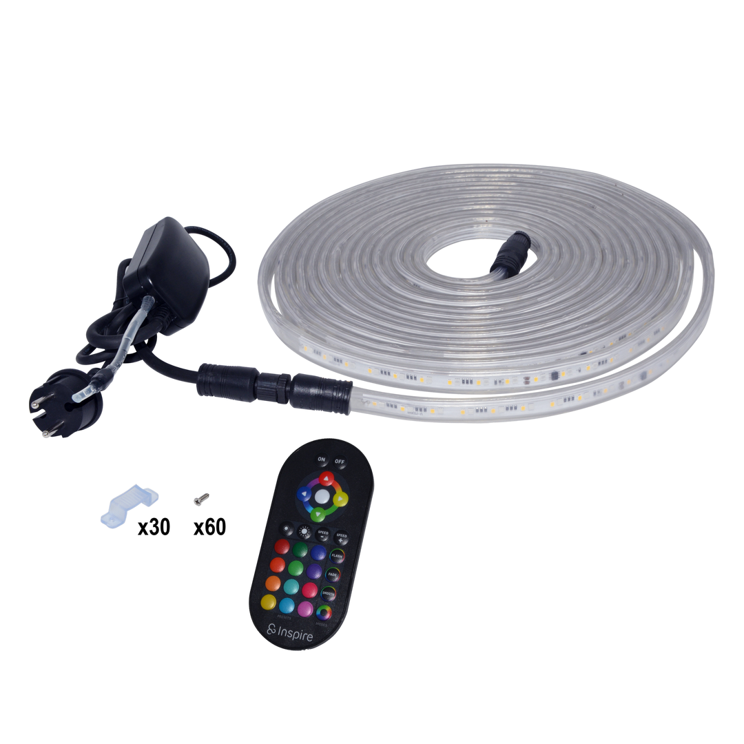 Αυτό το κιτ ταινιών LED εξωτερικού χώρου "Flexout" 5 μέτρων από την INSPIRE είναι ιδανικό για μεσαία έως μεγάλα εξωτερικά έργα χάρη στην βαθμολογία IP44 που διαθέτει για τον μετασχηματιστή. Παρέχει ισχυρή φωτεινότητα 1000 lumen ανά μέτρο φωτός και ένα ζωντανό, πολύχρωμο λευκό φως! Το τηλεχειριστήριο που περιλαμβάνεται σάς επιτρέπει να επιλέξετε το επιθυμητό χρώμα και να ρυθμίσετε την ένταση του φωτός. Μπορείτε επίσης να επεκτείνετε την ταινία έως και 50 μέτρα προσθέτοντας πολλαπλές επεκτάσεις 5 μέτρων. Εύκολη στην εγκατάσταση, η ταινία ασφαλίζεται με κλιπ για να ταιριάζει απόλυτα στο έργο σας και να επιτυγχάνεται ένα ευχάριστο αποτέλεσμα. Διατίθεται επίσης σε μήκος 5 μέτρων.