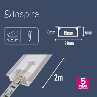 Συμβατό με τις ταινίες LED "Cutflexi" Inspire, αυτό το ασημί προφίλ αλουμινίου 2 μέτρων σε εσοχή παρέχει ομοιόμορφο, χωρίς αντανακλάσεις φωτισμό σε όλο το σπίτι σας, είτε σε τοίχους είτε σε έπιπλα. Προστατεύει επίσης την ταινία LED σας και σας επιτρέπει να ολοκληρώσετε κομψά το έργο φωτισμού σας. Διατίθεται επίσης σε λευκό και μαύρο χρώμα για να ταιριάζει απόλυτα με τη διακόσμησή σας, και σε εκδόσεις επιφανειακής τοποθέτησης (επίπεδο προφίλ) ή γωνίας.