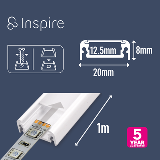 Συμβατό με τις ταινίες LED Inspire "Cutflexi", αυτό το λευκό επίπεδο προφίλ 1 μέτρου θα παρέχει ομοιόμορφο, χωρίς αντανακλάσεις φωτισμό σε όλο το σπίτι σας, είτε σε τοίχους είτε σε έπιπλα. Προστατεύει επίσης την ταινία LED σας και σας επιτρέπει να ολοκληρώσετε κομψά το έργο φωτισμού σας. Διατίθεται επίσης σε λευκό και μαύρο χρώμα για να ταιριάζει απόλυτα με τη διακόσμησή σας, καθώς και σε εσοχή ή γωνία.