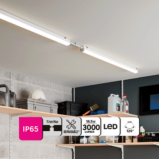 Αυτό το φωτιστικό γκαράζ LED "Dorni", με τα ενσωματωμένα LED και τον ελκυστικό σχεδιασμό του είναι ιδανικό για τον φωτισμό του γκαράζ, του εργαστηρίου, του στεγασμένου χώρου στάθμευσης, του πλυσταριού ή οποιουδήποτε υγρού δωματίου, χάρη στο βαθμό προστασίας IP65. Η ισχυρή απόδοση των 6000 lumen και το ουδέτερο λευκό φως 4000 Kelvin το καθιστούν μια πολύτιμη προσθήκη στον φωτισμό του δωματίου σας. Η δυνατότητα επισκευής και η ενεργειακή του απόδοση κλάσης C το καθιστούν μια έξυπνη επιλογή. Εύκολο στην εγκατάσταση, αυτό το φωτιστικό διαθέτει δύο υποδοχές σε κάθε άκρο, επιτρέποντάς σας να συνδέσετε πολλές μονάδες μεταξύ τους για να δημιουργήσετε μέγιστη κάλυψη φωτισμού έως και 11,40 μέτρα στο δωμάτιό σας! Αυτό το φωτιστικό διατίθεται επίσης σε έκδοση 3000 lumen.