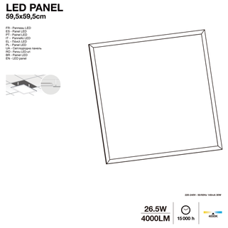 LED πάνελ 60x60cm 3800LM 30W 4000K ουδέτερο λευκό φως