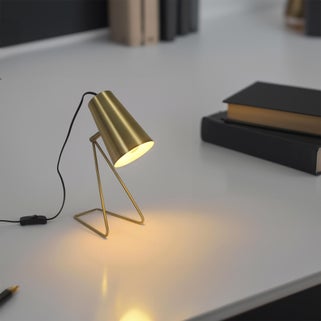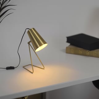 Το φωτιστικό Moeta της INSPIRE, με ύψος 30 cm, προσθέτει μια μοντέρνα και κομψή πινελιά στον εσωτερικό σας χώρο χάρη στο χρυσό ατσάλινο σκελετό του. Το ατσάλινο καπέλο του διαχέει ένα ζεστό και αποτελεσματικό φως, ιδανικό για να φωτίζει ένα γραφείο, ένα κομοδίνο ή μια μικρή γωνία σαλονιού. Η υποδοχή E14 σάς επιτρέπει να επιλέξετε τη λάμπα που ταιριάζει καλύτερα στις ανάγκες σας, δημιουργώντας την επιθυμητή ατμόσφαιρα. Ιδανικό για μικρότερους χώρους.