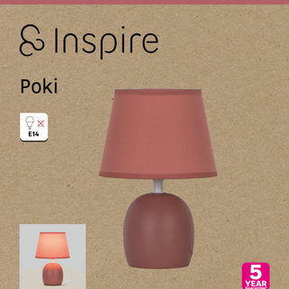 Το POKI από την INSPIRE είναι ένα κομψό και λειτουργικό επιτραπέζιο φωτιστικό που διατίθεται σε διάφορα χρώματα. Με ύψος 24,5cm, αυτό το φωτιστικό είναι ιδανικό για να προσθέσετε μια πινελιά φωτός στο κομοδίνο ή το σαλόνι σας. Ο μοντέρνος σχεδιασμός του συνδυάζεται εύκολα με κάθε διακόσμηση. Αυτό το φωτιστικό απαιτεί λάμπα E14 (συνιστούμε λάμπα μάρκας LEXMAN, που πωλείται ξεχωριστά) για να παρέχει ένα απαλό και ευχάριστο φως. Αυτό το προϊόν INSPIRE συνοδεύεται από 5ετή εγγύηση.