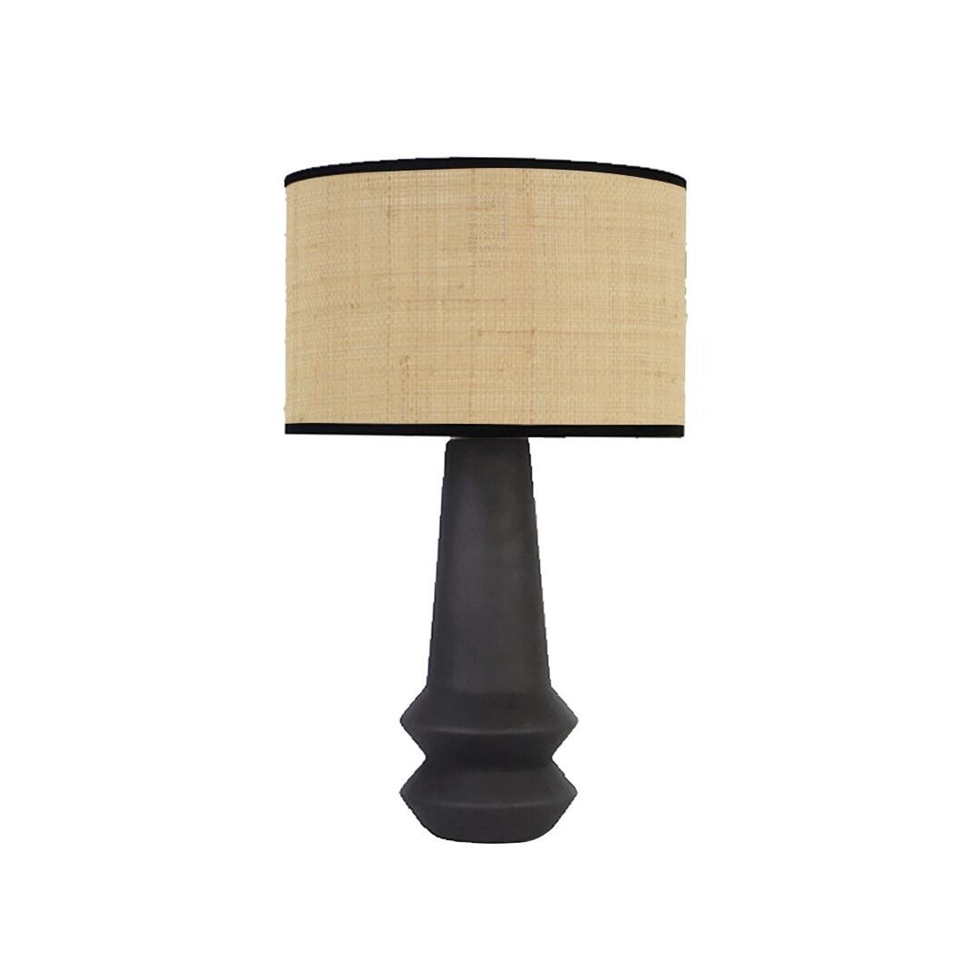 Το φωτιστικό Bako είναι κατασκευασμένο από κεραμικό υλικό σε μαύρο χρώμα και φυσικό αμπαζούρ από ράφια με μαύρο περίγραμμα. Συμβατό με λαμπτήρα E27. Για εσωτερική χρήση. (Δεν περιλαμβάνεται λάμπα).