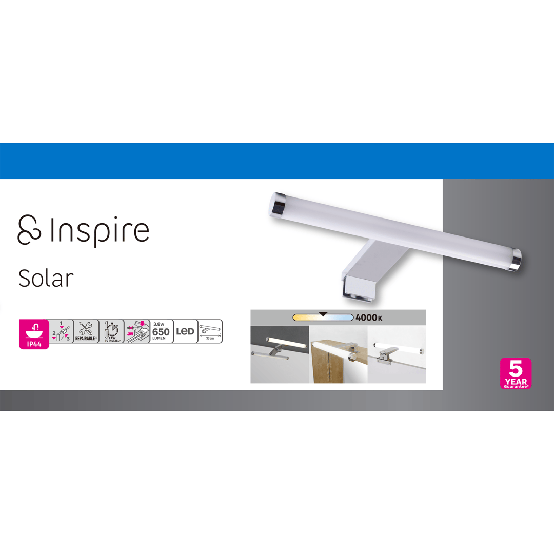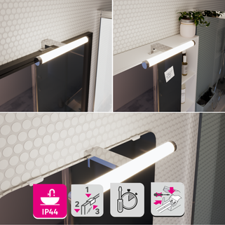 Αυτό το φωτιστικό μπάνιου LED χρωμίου 30cm. είναι κατάλληλο για τοποθέτηση πάνω από τον νιπτήρα του μπάνιου σας χάρη στην βαθμολογία IP44. Επωφεληθείτε από τις τρεις επιλογές τοποθέτησης για να το εγκαταστήσετε όπως επιθυμείτε: όρθιο, πάνω ή πίσω από τον καθρέπτη. Αυτή η ευελιξία επιτρέπει στο φωτιστικό να προσαρμόζεται τέλεια στη διαρρύθμιση του μπάνιου σας. Εξοπλισμένο με ενσωματωμένα LED, αυτό το επιτοίχιο φωτιστικό παρέχει ένα άνετο λευκό φως 4000 Kelvin.