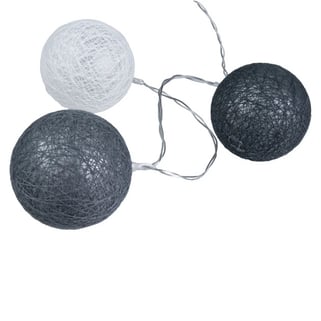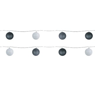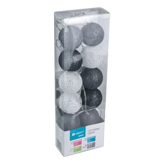 Η γιρλάντα LED με μπάλες από βαμβάκι αποτελεί μια εξαιρετική προσθήκη στον εσωτερικό σας χώρο. Διακοσμεί απαλά και αποτελεσματικά το χώρο και σας επιτρέπει να εξοικονομείτε ηλεκτρική ενέργεια. Η γιρλάντα αποτελείται από 12 λαμπερές μπάλες σε λευκό και γκρι χρώμα. Η διάμετρος της μπάλας είναι 6 cm. Η γιρλάντα LED αποτελείται από 12 μπάλες που συνδέονται με ένα διαφανές σύρμα. Μπορείτε να τυλίξετε τη γιρλάντα γύρω από το κιγκλίδωμα της σκάλας για να φωτίσετε την είσοδο του σπιτιού σας. Η αλυσίδα μπορεί επίσης να κρεμαστεί σε γάντζους στερεωμένους στον τοίχο, σε ένα ράφι ή σε ένα παράθυρο. Η απόσταση μεταξύ των μπαλών είναι 15 cm. Οι γιρλάντες κάνουν εξαιρετική δουλειά στη διακόσμηση χριστουγεννιάτικων δέντρων, κατασκηνώσεων και βεραντών. Οι αλυσίδες LED τροφοδοτούνται με μπαταρίες. Χρειάζεστε μόνο δύο μπαταρίες AA. Μπορείτε να τις κρεμάσετε οπουδήποτε χωρίς να χρειάζεστε πρίζα. Η γιρλάντα εκπέμπει ζεστό φως (3000 K) που δίνει στο εσωτερικό έναν ζεστό και φιλόξενο χαρακτήρα.