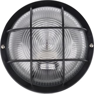 Αυτό το στρογγυλό μαύρο φωτιστικό οροφής με πλέγμα, διαμέτρου 18,5 cm, είναι ιδανικό για το γκαράζ, το εργαστήριο ή το μπάνιο σας χάρη στην κατηγορία IP44. Χρησιμοποιεί λαμπτήρα E27, μέγιστης ισχύος 60W (δεν περιλαμβάνεται).