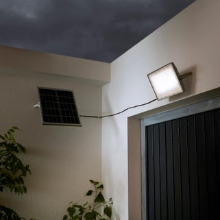 Αυτός ο ηλιακός προβολέας Bevo από την INSPIRE, IP65 και 4000K, είναι ιδανικός για τον φωτισμό του εξωτερικού σας χώρου με ενέργεια. Πρόκειται για ένα υψηλής ποιότητας ηλιακό σύστημα φωτισμού LED, που αποτελείται από ένα μονοκρυσταλλικό φωτοβολταϊκό πάνελ με επιτοίχια βάση, ένα μοντέρνο, λεπτό εξωτερικό σποτ με ενσωματωμένη επαναφορτιζόμενη μπαταρία υψηλής απόδοσης και ένα τηλεχειριστήριο για τη διαχείριση χειροκίνητων και προγραμματισμένων λειτουργιών. Μπορείτε να επιλέξετε ανάμεσα σε 5 επίπεδα φωτεινότητας, που κυμαίνονται από χαμηλό έως υψηλό. Η φωτεινή ισχύς αυξάνεται καθώς φορτίζεται η μπαταρία: με πλήρη φόρτιση, το φωτιστικό θα φωτίζει με τη μέγιστη φωτεινότητα των 1200 lumens. Το προϊόν είναι εξοπλισμένο με χρονοδιακόπτη που σας επιτρέπει να φωτίζετε για 3 ώρες, 5 ώρες ή 8 ώρες. Αυτό το ενσωματωμένο προϊόν LED έχει 5ετή εγγύηση και είναι επισκευάσιμο.