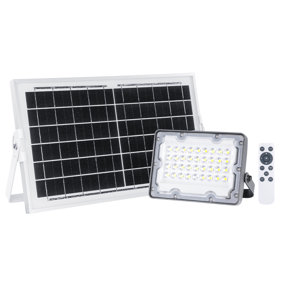 Αυτός ο ηλιακός προβολέας Bevo από την INSPIRE, IP65 και 4000K, είναι ιδανικός για τον φωτισμό του εξωτερικού σας χώρου με ενέργεια. Πρόκειται για ένα υψηλής ποιότητας ηλιακό σύστημα φωτισμού LED, που αποτελείται από ένα μονοκρυσταλλικό φωτοβολταϊκό πάνελ με επιτοίχια βάση, ένα μοντέρνο, λεπτό εξωτερικό σποτ με ενσωματωμένη επαναφορτιζόμενη μπαταρία υψηλής απόδοσης και ένα τηλεχειριστήριο για τη διαχείριση χειροκίνητων και προγραμματισμένων λειτουργιών. Μπορείτε να επιλέξετε ανάμεσα σε 5 επίπεδα φωτεινότητας, που κυμαίνονται από χαμηλό έως υψηλό. Η φωτεινή ισχύς αυξάνεται καθώς φορτίζεται η μπαταρία: με πλήρη φόρτιση, το φωτιστικό θα φωτίζει με τη μέγιστη φωτεινότητα των 670 lumens. Το προϊόν είναι εξοπλισμένο με χρονοδιακόπτη που σας επιτρέπει να φωτίζετε για 3 ώρες, 5 ώρες ή 8 ώρες. Αυτό το ενσωματωμένο προϊόν LED έχει 5ετή εγγύηση και είναι επισκευάσιμο.