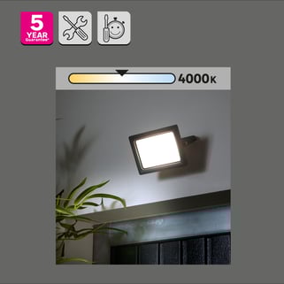 Με το μοντέρνο σχεδιασμό του, το ανθρακί του χρώμα και το δυνατό φωτισμό του, θα βρείτε σε αυτόν τον προβολέα LED Yonkers, με βαθμό προστασίας IP65, ένα πραγματικό πλεονέκτημα για το φωτισμό μιας εξωτερικής επιφάνειας περίπου 150 m². Με ένα ουδέτερο λευκό χρώμα φωτός (4000Κ), θα επωφεληθείτε από τη βέλτιστη και άνετη φωτεινότητα για τις εισόδους του γκαράζ, τις προσόψεις, τις βεράντες, τις τέντες, τους χώρους παιχνιδιού και άλλους χώρους που θέλετε να φωτίσετε. Ο απλός σύνδεσμος στο πίσω μέρος θα διευκολύνει την εγκατάσταση. Αυτό το μοντέλο διατίθεται επίσης με ανιχνευτή κίνησης και με διαφορετικές δυνάμεις φωτισμού για προσαρμογή στις ανάγκες σας. Η σειρά Yonkers έχει 5ετή εγγύηση και είναι επισκευάσιμη.