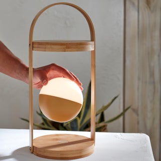 Ιδανικό για να τοποθετηθεί στο τραπέζι σας ή στον κήπο σας, αυτό το επιτραπέζιο φωτιστικό από μπαμπού "Lisala" θα φωτίσει τα βράδια σας με ισχύ φωτισμού 1300 lumens. Διαθέτει μια επαναφορτιζόμενη ελαφριά μπάλα (χάρη στο USC τύπου C που περιλαμβάνεται) που μαγνητίζετε στο κάτω μέρος της δομής του σχοινιού. Μόλις φορτιστεί, πάρτε το φωτιστικό σας όπου θέλετε και φωτίστε τα καλοκαιρινά σας βράδια! Χάρη στο συμπεριλαμβανόμενο τηλεχειριστήριο, μπορείτε να διαφοροποιήσετε την ένταση του ζεστού λευκού του ανάλογα με την ατμόσφαιρα που θέλετε.