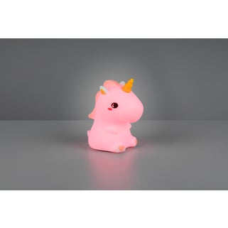 Το επιτραπέζιο φωτιστικό Goldy είναι αγαπημένο των παιδιών! Η αξιολάτρευτη επιτραπέζια λάμπα σε σχήμα μονόκερου είναι μια εξαιρετικά χαριτωμένη λεπτομέρεια για τη διακόσμηση ενός παιδικού δωματίου. Το υψηλής ποιότητας φως LED που είναι ενσωματωμένο στη λάμπα έχει θερμοκρασία θερμού λευκού χρώματος 3000K, και ο διακόπτης χρώματος RGBW σάς επιτρέπει να αλλάζετε το χρώμα του φωτός (κόκκινο, πράσινο, μπλε, λευκό) πιέζοντας ελαφρά το κεφάλι του μονόκερου. Ο διακόπτης on/off βρίσκεται στο κάτω μέρος της λάμπας. Το Goldy λειτουργεί με μπαταρία. Δεν περιλαμβάνονται μπαταρίες 3 x AAA στη συσκευασία. Η επιτραπέζια λάμπα Rexy έχει ύψος 15 cm, πλάτος 10 cm και βάθος 9,5 cm.