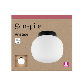 Το φωτιστικό οροφής ARISTIDE ξεχωρίζει για τον διαχύτη από λευκό οπάλ γυαλί σε ματ απόχρωση, ο οποίος εκπέμπει απαλό, ομοιόμορφο φως για να δημιουργήσει μια ευχάριστη και χαλαρωτική ατμόσφαιρα. Εξοπλίστε την απλίκα τοίχου σας με μια λάμπα LED Lexman (βάση E27) και ζεστάνετε τον εσωτερικό σας χώρο εξοικονομώντας ενέργεια. Η λάμπα πωλείται ξεχωριστά. Αυτό το προϊόν INSPIRE συνοδεύεται από 5ετή εγγύηση. Μπορείτε επίσης να συνδυάσετε την απλίκα τοίχου σας με άλλα προϊόντα της ίδιας σειράς, εάν το επιθυμείτε.