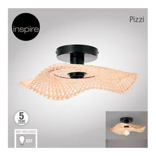Αυτό το φωτιστικό οροφής Inspire Pizzi, με διάμετρο 38 cm, θα προσδώσει μια μποέμ πινελιά στον εσωτερικό σας χώρο χάρη στο λεπτό, ζεστό και μοντέρνο σχήμα του, προκαλώντας χαλάρωση. Αυτό το προϊόν είναι ιδανικό για να φωτίζει ένα σαλόνι, μια κουζίνα ή μια είσοδο, ενώ παράλληλα αναδεικνύει μια όμορφη διακοσμητική λάμπα. Μπορείτε να εξατομικεύσετε το εφέ φωτισμού επιλέγοντας μια λάμπα E27 (πωλείται ξεχωριστά) που ταιριάζει στις ανάγκες σας. Σας προτείνουμε να χρησιμοποιήσετε μια διαφανή διακοσμητική λάμπα με ορατά νήματα για να εκτιμήσετε πλήρως το εφέ φωτισμού που δημιουργεί το προϊόν στον τοίχο σας. Αυτό το προϊόν Inspire συνοδεύεται από 5ετή εγγύηση και διατίθεται σε αντίστοιχα φωτιστικά.