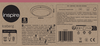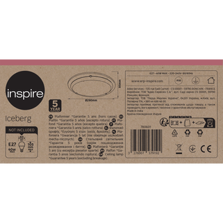 Αυτό το φωτιστικό πλαφονιέρα τοίχου Inspire, κατασκευασμένη από λευκό μέταλλο και παγωμένο γυαλί, έχει διάμετρο 29 cm και θα αποτελέσει την τέλεια προσθήκη στη διακόσμησή σας. Αυτό το φωτιστικό οροφής είναι ένας διακριτικός συνδυασμός μετάλλου και γυαλιού. Η σειρά ICEBERG είναι ιδανική για τη δημιουργία διαφορετικών εφέ φωτισμού, επιλέγοντας μια λάμπα E27 που ταιριάζει στις ανάγκες σας. Μπορείτε επίσης να συνδυάσετε αυτό το προϊόν με άλλα προϊλοντα της ίδιας σειράς. Η λάμπα E27 πωλείται ξεχωριστά. Αυτό το προϊόν Inspire συνοδεύεται από 5ετή εγγύηση.