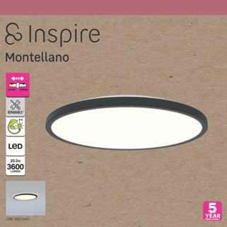 Το φωτιστικό οροφής LED Inspire Montellano, με το μαύρο φινίρισμα, αποτελεί μια μοντέρνα προσθήκη σε κάθε δωμάτιο. Με διάμετρο 38,9cm, αυτό το φωτιστικό οροφής LED εκπέμπει ισχυρή φωτεινότητα 3500 lumen, παρέχοντας άφθονο φωτισμό για μεγάλους χώρους. Ένα από τα ξεχωριστά χαρακτηριστικά του είναι η επιλογή Kelvin, που σας επιτρέπει να ρυθμίσετε τη θερμοκρασία χρώματος κατά την εγκατάσταση. Μπορείτε να επιλέξετε ανάμεσα σε ζεστό φως 2700K ή ψυχρό φως 6500K, επιτρέποντάς σας να δημιουργήσετε την τέλεια ατμόσφαιρα για τον χώρο σας. Ιδανικό για κουζίνα, σαλόνι ή γραφείο, παρέχοντας φωτεινό, καθαρό φως που ενισχύει την παραγωγικότητα και την ορατότητα. Ο μοντέρνος σχεδιασμός του συμπληρώνει μια ποικιλία εσωτερικών χώρων, προσθέτοντας μια πινελιά σύγχρονου στυλ στον χώρο σας. Επιπλέον, αυτό το προϊόν είναι επισκευάσιμο, παρατείνοντας περαιτέρω τη διάρκεια ζωής του και καθιστώντας το μια πραγματικά μακράς διαρκείας επιλογή. Αυτό το προϊόν συνοδεύεται από 5ετή εγγύηση, μια απόδειξη της ποιότητας και της αντοχής του. Το φωτιστικό οροφής LED Inspire Montellano είναι ο τέλειος συνδυασμός λειτουργικότητας, μοντέρνου στυλ.